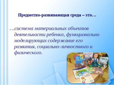 Серьезное внимание необходимо уделить созданию в группе условий, способствующих проявлению познавательной активности каждого ребенка. В качестве важного условия познавательного развития в ФГОС названа Развивающая предметно-пространственная среда, которая должна обеспечить игровую, познавательную, исследовательскую активность, экспериментирование с доступными материалами.
